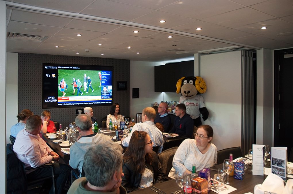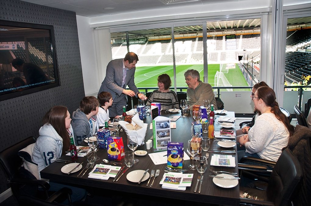 After a meet and greet in reception, Nathan Spencer from Cinos took the guys pitch side for a group photo; a great memento from the evening. Back up in the Cinos Suite, the children were entertained by a magician and were visited by Sam Rush, President & Chief Executive at DCFC. As well as enjoying The Rams cruise to a 4-0 victory against Hull, the group got the chance to meet Rammie, the DCFC mascot, who visited the suite to have his photograph taken with the children.