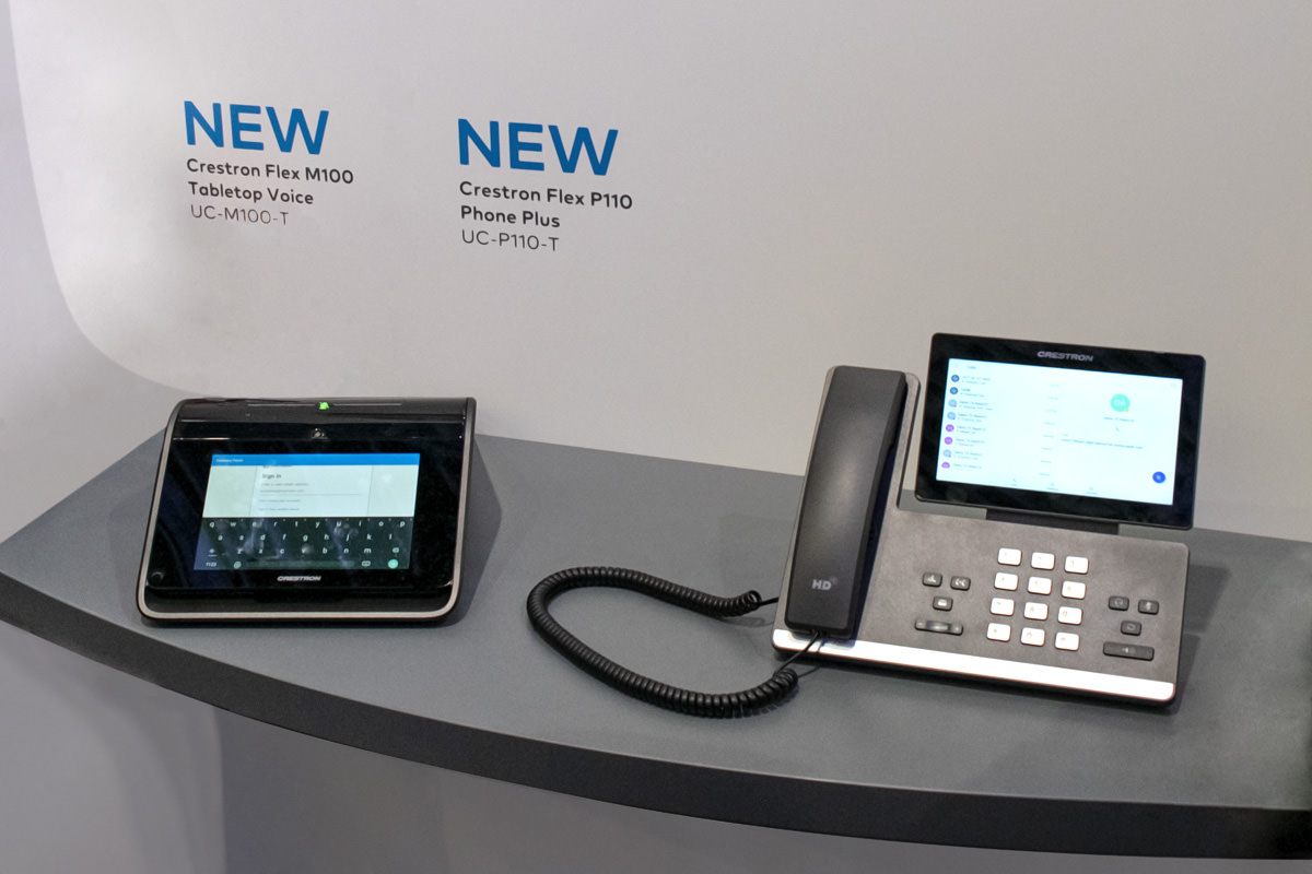 For desktop users, Crestron have created their first ever voice-over-IP phone with the Flex P100 Series. This stylish desktop phone features a large touch screen which delivers a native MS Teams or Skype for Business experience; enabling users to access calendars and connect with colleagues quickly and intuitively.