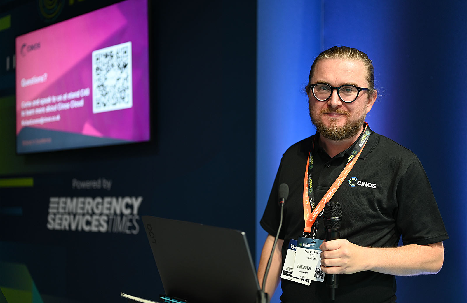 On the second day of the show, Richard Evans, Chief Technology Officer at Cinos, delivered a keynote session, diving deeper into our cloud-based proposition. He outlined how emergency services can safely transition aging 999, 112, and 101 call-handling systems to the cloud, eliminating the risks of maintaining outdated, on-premise infrastructure. He addressed common concerns around migration and highlighted how Cinos ensures a smooth, secure, and reliable shift to cloud-based operations. Moreover, he emphasised how cloud adoption not only strengthens service continuity but also introduces new capabilities that better serve the public and empower emergency responders.