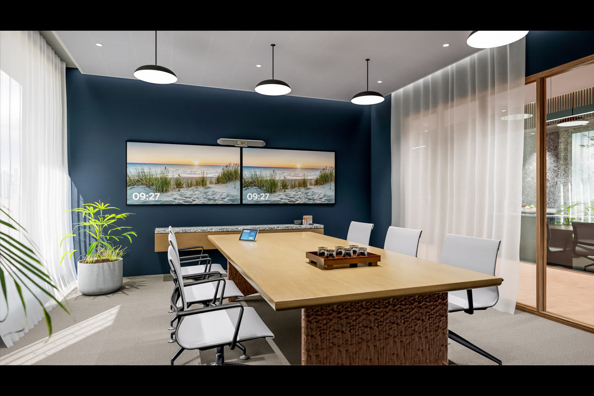 The scope of each deployment varied between offices. Poly Studio X50 video conferencing bars were chosen for smaller meeting spaces due to their compact all-in-one form factor and impressive out-of-the-box functionality. With high quality audio and advanced camera capabilities, employees and guests benefit from an immersive meeting experience with the ability to share content wirelessly from any personal device – with no requirement for special apps or tools.