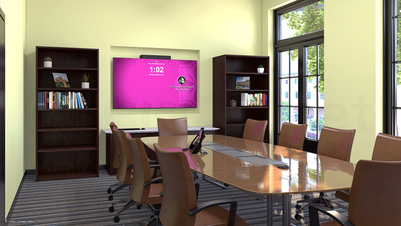 Cinos was commissioned to implement a proof-of-concept (POC) in the University Advancement and External Relations Conference Room, a 10-person meeting space located on the fourth floor of the Central Academic Building. This division plays a pivotal role in supporting the university’s mission by fostering philanthropic support, building community relationships, and advancing strategic priorities that ensure academic and institutional success. Selecting this conference room for the POC highlighted the critical need for a user-friendly, seamless conferencing environment to facilitate impactful discussions with donors, alumni, and external partners, as well as internal strategic planning sessions.