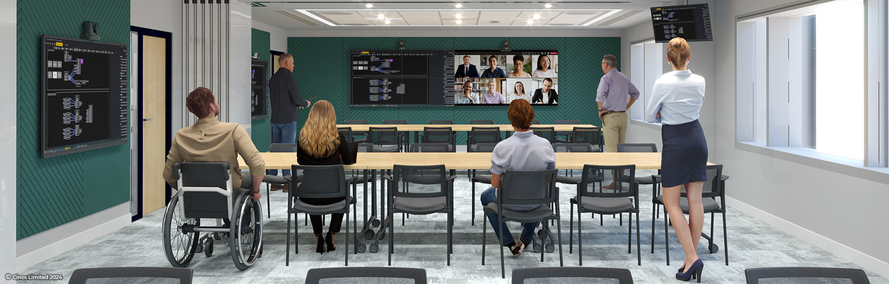 Following site surveys and discussions with the UKHSA team, Cinos set about defining the different meeting room types and tailoring each solution to meet the operational requirements of the space.