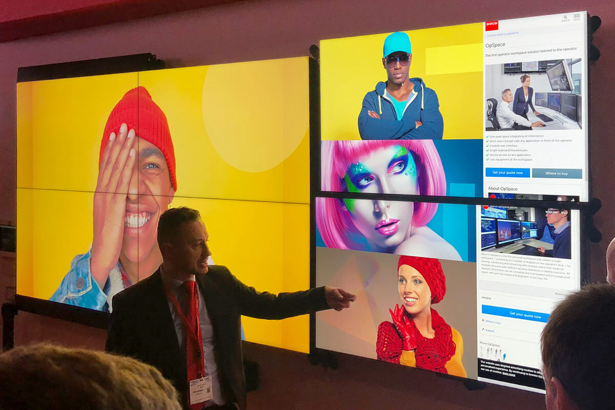 Having made our name in command & control installations, the team from Cinos were keen to see the latest control room developments on the Barco stand. Nigel introduced us to one of their latest innovations – SecureStream – a media streaming solution which enables operators to easily and securely share content beyond the control room. It is safe to say our team were impressed.