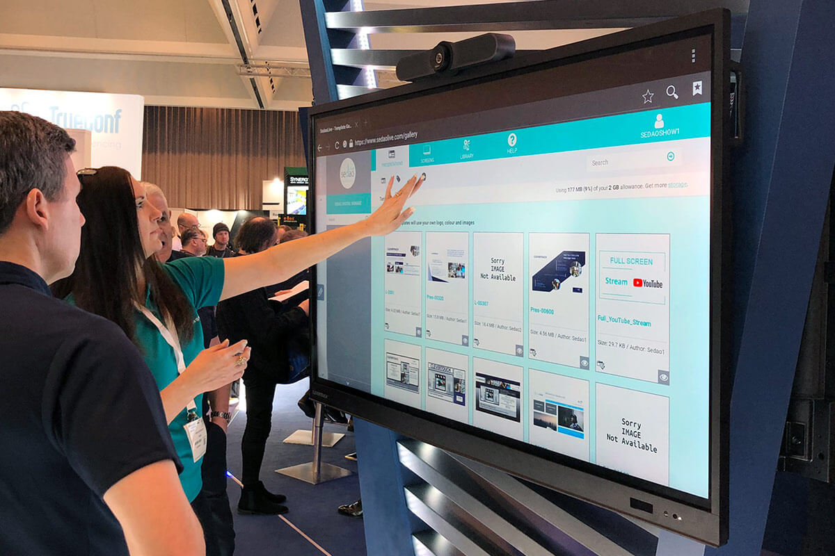 As part of Clevertouch’s Enterprise Ecosystem, SedaoLive Cloud provides an intuitive digital signage solution which allows organisations to easily broadcast information to any display or room booking panel in their estate. Controlled from one user account, it comes packed with over 100 customisable templates, enabling organisations to get their message out using a wide range of media including video, html5, news feeds and live TV. Working in conjunction with Clevertouch, SedaoLive Cloud offers organisations a greater ROI as they benefit from room booking, interactive collaboration and digital signage, integrated into a single ecosystem.