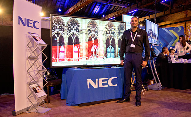 NEC deliver on their promise of setting new standards in image size and quality by providing an 84“canvas display with UltraHigh Definition (UHD). The crisp UHD quality captured the attention of passing delegates at the show, and with a range of innovative features this solution provides the complete package for all kinds of professional applications