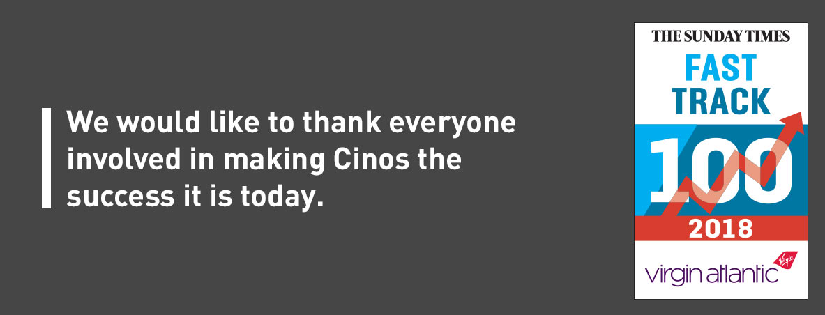 We would like to thank everyone involved in making Cinos the success it is today. We are extremely proud to have been recognised as one of the fastest growing companies in the UK and look forward to taking Cinos even further in 2019 and beyond.
