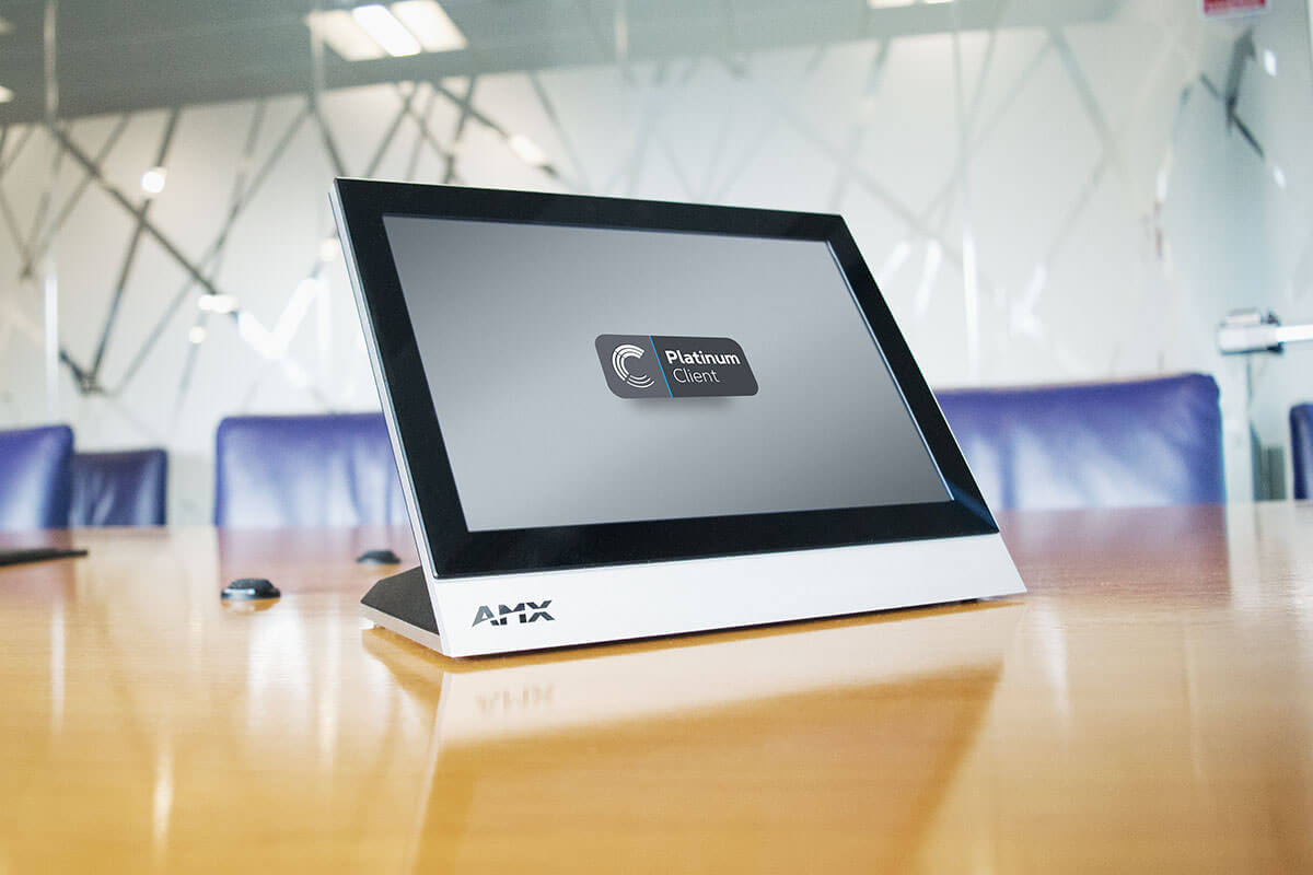 AMX Modero S series touch panels provide a consistent user interface in all meeting areas. Designed as a control surface to manage a wide variety of digital and analogue devices, this intuitive, easy to use solution is perfect for boardrooms and collaboration areas.