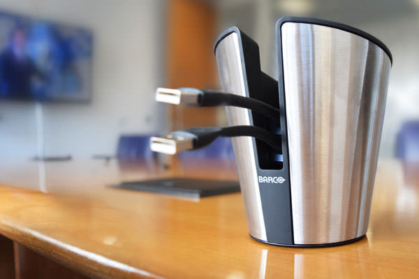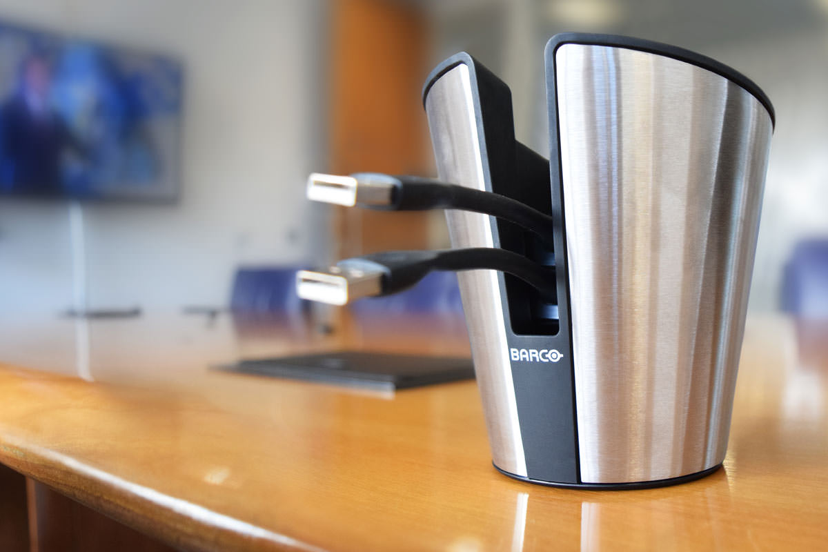 The AMX NI-700 NetLinx® Integrated Controller is used to meet the specific control and automation needs of each room. Ideal for single room environments the NI-700 enables employees to switch between various room sources such as ClickShare, TripleTV, the room PC and Polycom’s video conferencing. Users can select any of these sources via the AMX MST-701 7” Modero S Series Tabletop Touch Panel.